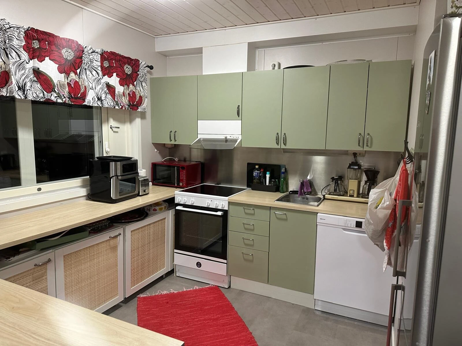 Käytössäsi ovat siistit ja toimivat yhteistilat: suihku, wc ja pyykinpesukone. Keittiö on suunniteltu tekemistä varten ja varusteltu kattavasti: astianpesukone, jääkaappi–pakastin, mikroaaltouuni, kahvinkeitin, vedenkeitin, hella, uuni, airfryer sekä runsaasti astioita ja ruoanlaittovälineitä. Ulkona odottaa suuri kaasugrilli, joka kutsuu yhteiseen ruoanlaittoon ja rentoon yhdessäoloon.